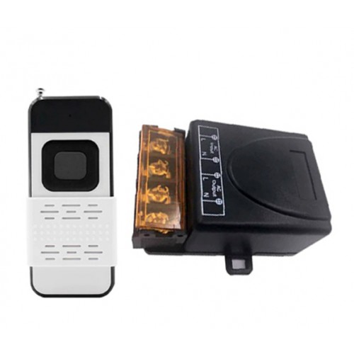 Комплект з одного дистанційного одноканального вимикача (реле) 85-250 В підвищеної потужності в корпусі з пультом дистанційного керування. Призначений для керування потужними приладами без додаткових пристроїв.