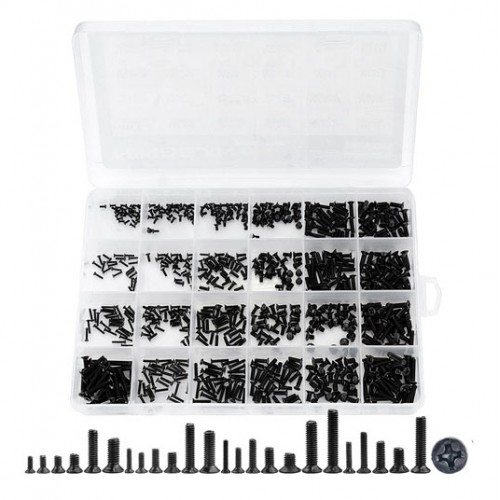 Даний набір мікрогвинтів поставляється в пластиковому кейсі для зберігання і складається з 720 гвинтів, розділених на 24 види (довжина x діаметр):