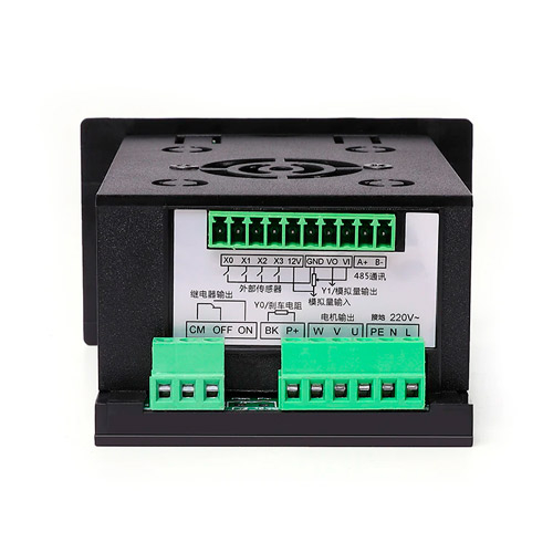 На задній стороні розміщені клемні колодки для підключення електродвигуна, напруги живлення, вхідних і вихідних сигналів.