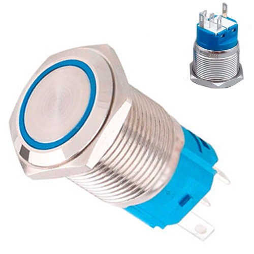 Кнопка 16мм поворотна, кнопка зворотна, кнопка зворотна 12-24В, кнопка зворотна синій LED, кнопка зворотна 5pin, кнопка зворотна 16K-P11D