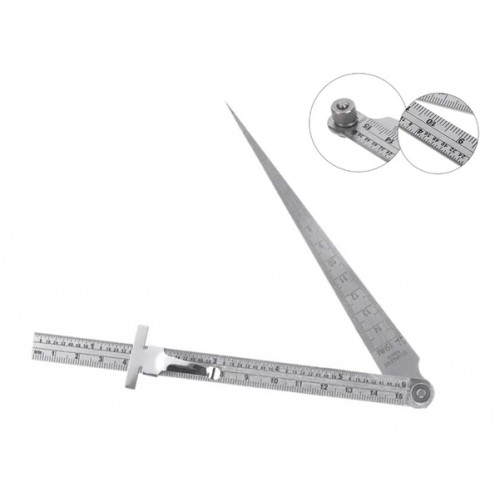 Вимірювач зазорів у комплекті з лінійкою для визначення та контролю діаметра отворів та ширини пазів. Лінійка оснащена пересувним упором для виміру глибини пазів, відстані від краю і т.д.