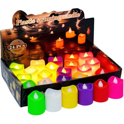LED світильник, свічки 24шт, LED свічки теплий білий, LED свічки з полум'ям, LED свічки кольорові, LED свічки