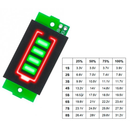 Універсальний індикатор заряджання літієвих акумуляторів 1S-8S. Дозволяє відображати рівень заряду акумулятора в реальному часі.