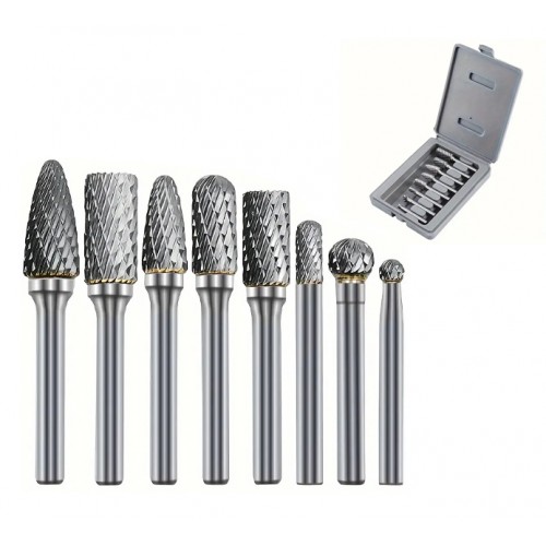 Набір з 8 борфрезів по металу ідеально підійдуть для ефективної та швидкої обробки отворів, гострих країв, зварних швів, жолобів тощо. Борфрези призначені для роботи з чавуном, сталлю, міддю, алюмінієм тощо. Набір включає фрези різної форми, що гарантує універсальність застосування, а комплектний пластиковий кейс запобігає втраті борфрез під час транспортування або зберігання.