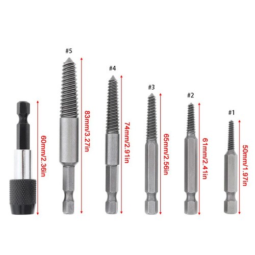 Набір з 5 гвинтових екстракторів та магнітного подовжувача для вилучення пошкоджених гвинтів, болтів.