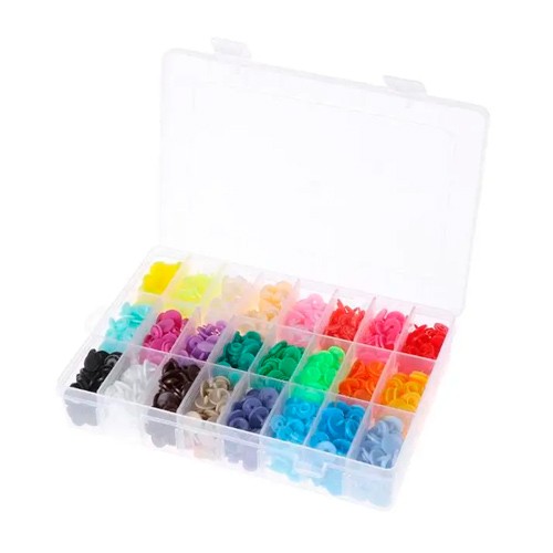 Набір із 360 пластикових кнопок Т5 на одяг. Використовується разом із заклепочником (до комплекту не входить) і дозволить швидко і легко встановити або замінити кнопки в домашніх умовах.