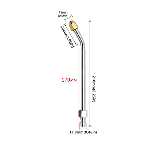 Подовжена колінчаста насадка для миття високого тиску. Насадка може використовуватися для очищення вузьких просторів, таких як автомобільні колеса, зливні труби, садове обладнання для іригації та інше.