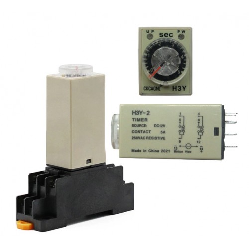 Реле часу, реле часу, таймер H3Y-2, реле 0-5c, реле 12В, реле 5А, реле CKCAGNL на DIN-рейку