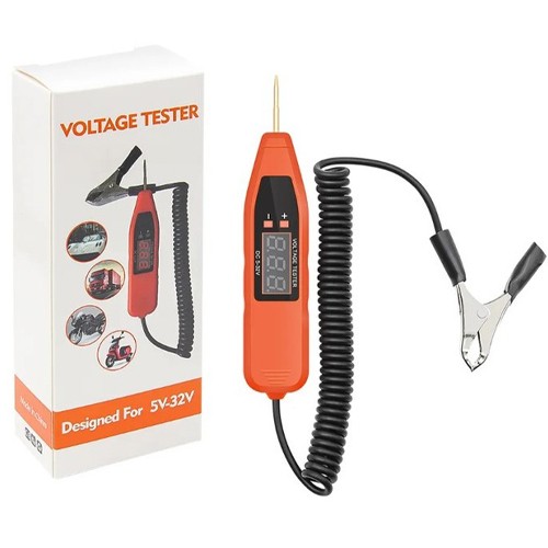 Компактний тестер для вимірювання напруги живлення автомобільного акумулятора та виявлення несправностей у низьковольтних електричних ланцюгах транспортних засобів. Дозволить швидко визначити обриви, короткі замикання, несправні запобіжники та розподільники. Підходить для широкого спектру транспортних засобів, серед яких автомобілі, вантажівки, мотоцикли, причепи, човни тощо.