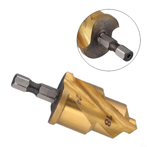 Ступінчасте свердло для відновлення свердління сантехнічних водопровідних з'єднань фітингів труб ПВХ. Має шестигранний хвостовик і підходить для використання разом із шуруповертом або дрилем.