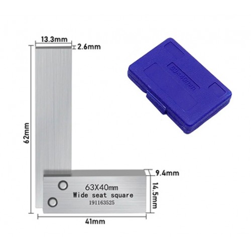 Кутник перевірочний, кутник 90 °, кутник 63x40мм, кутник слюсарний, кутник зі сталі, кутник для повірки прямих кутів, кутник для прямих кутів