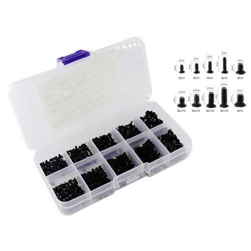 Даний набір мікрогвинтів поставляється в пластиковому кейсі для зберігання і складається з 500 гвинтів, розділених на 10 видів (довжина x діаметр):