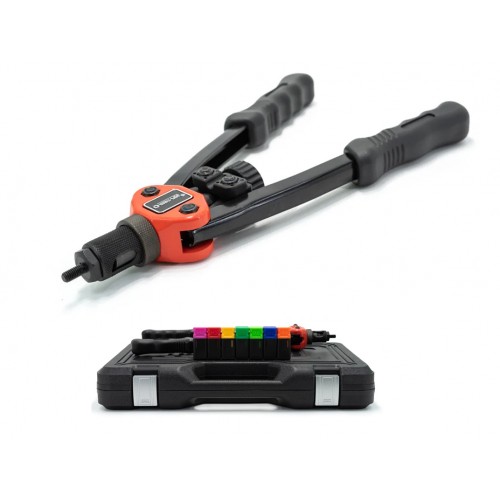 Заклепочник - це професійний інструмент для швидкого і зручного скріплення між собою різних матеріалів за допомогою різьбових заклепок. Принцип роботи - на стрижень з різьбленням нагвинчується заклепка, і вставляється в отвір з подальшим стисненням рукояток приладу. Що призводить до того, що зім'яло заклепки зі зворотного боку від інструменту, і формуванні капелюшки.