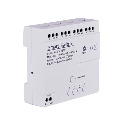 Zigbee RF модуль, Zigbee RF реле, реле 4 канали, Zigbee RF вимикач, вимикач для розумного будинку, Zigbee вимикач, Zigbee вимикач 220В, Zigbee вимикач 10/16А,